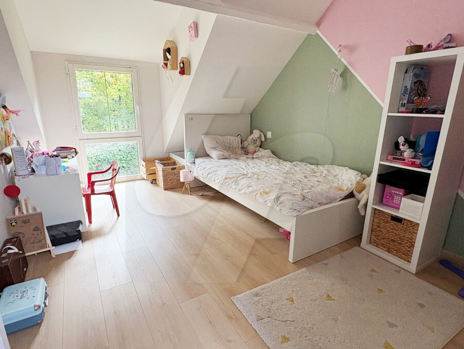 GRANDCHAMP DES FONTAINES, commerces et écoles à pieds. Jardin clos de plus de 1000 m², venez découvrir tout le confort de cette longère familiale de 170 m² avec 5 chambres. Elle dispose d' une entrée avec placards, un salon et un séjour offrant 70 m² environ à vivre, avec le charme des poutres et de sa cheminée avec une cuisine ouverte équipée, puis une suite parentale avec sa salle de bains (douche et baignoire) et une autre chambre.