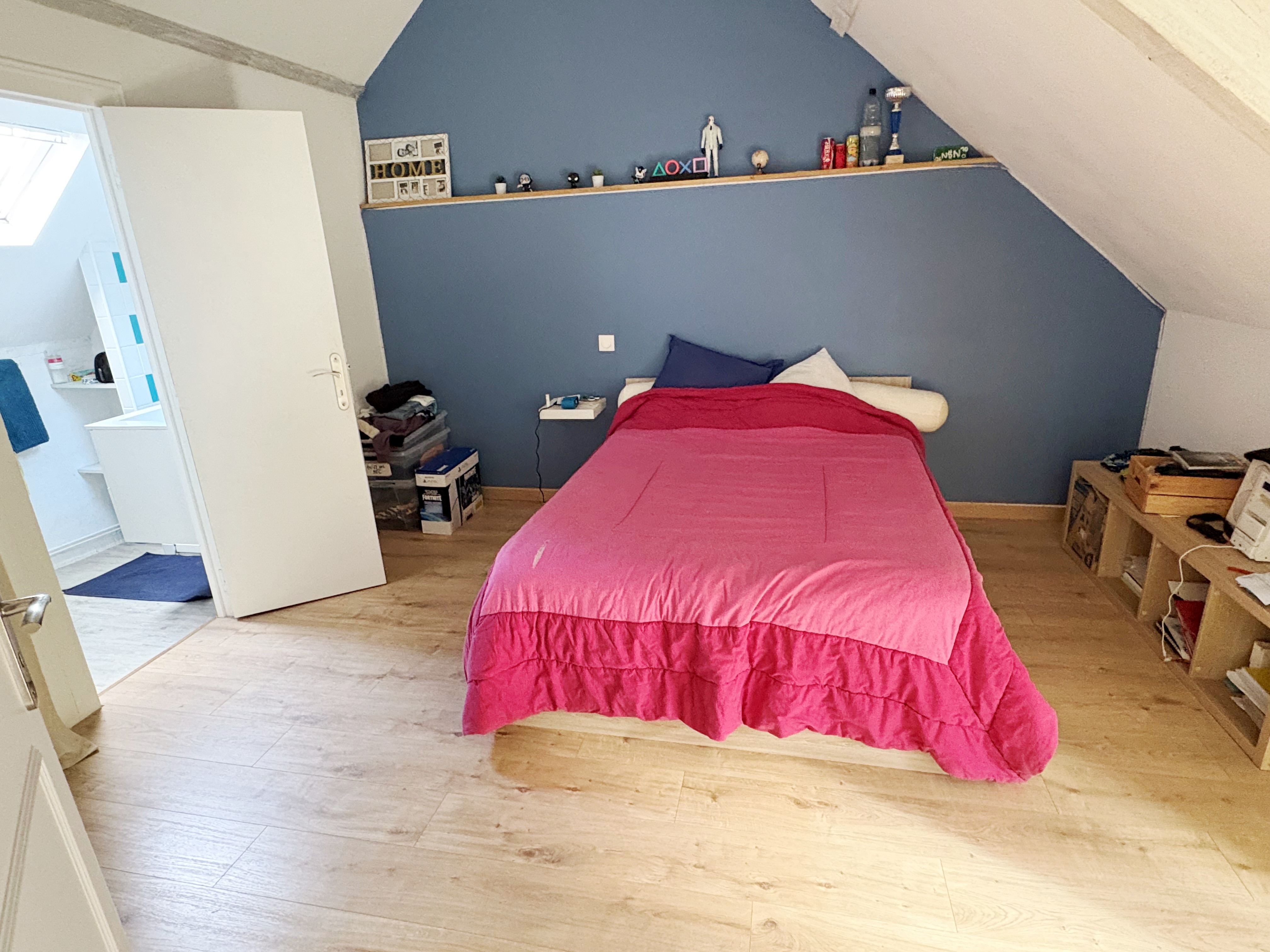 A l'étage, une grande chambre avec une salle d'eau privative, un dégagement permettant d'organiser des rangements, deux chambres et une salle d'eau.