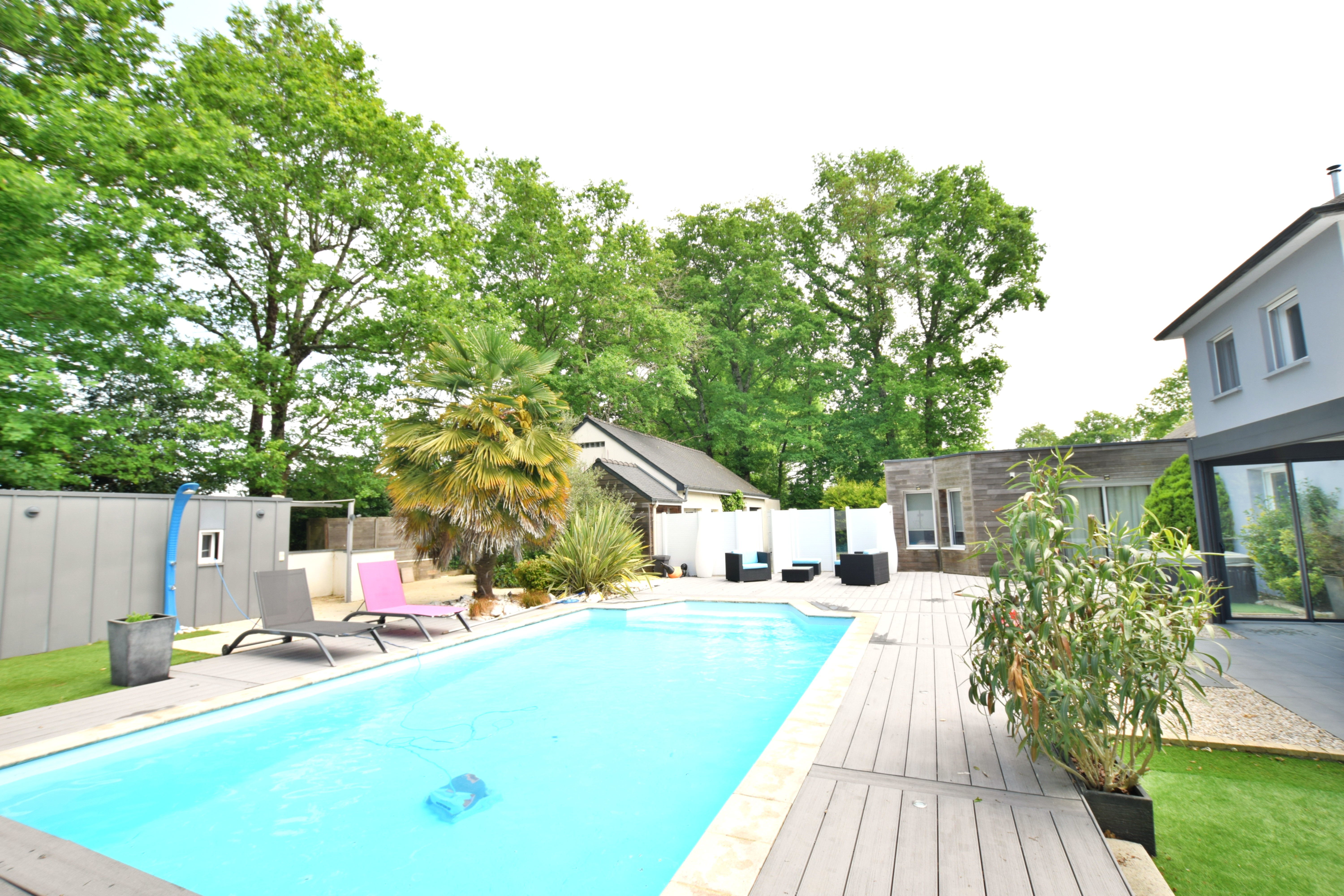 A l'extérieur : Piscine, pergola et magnifique terrain paysagé pour profiter pleinement des beaux jours.