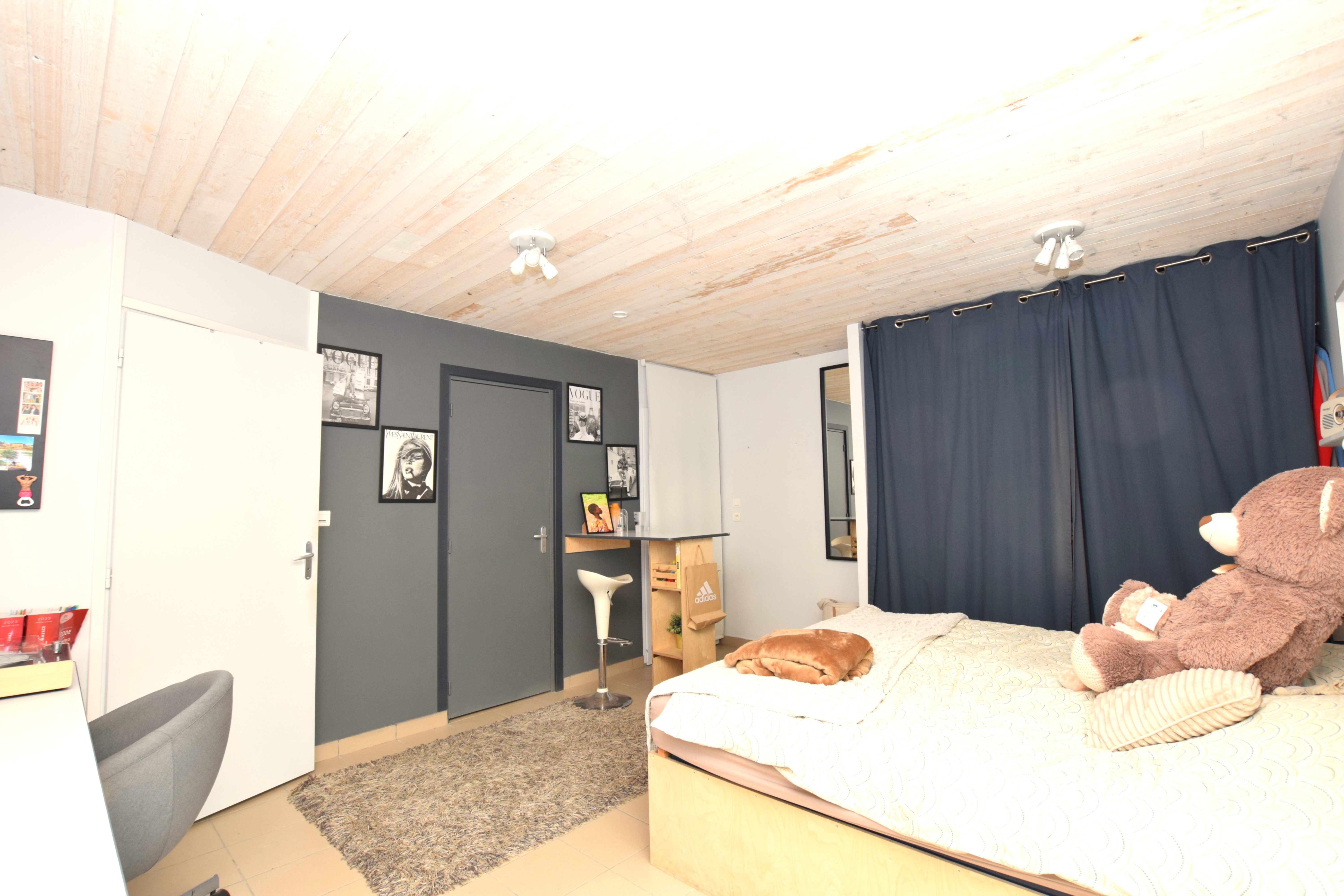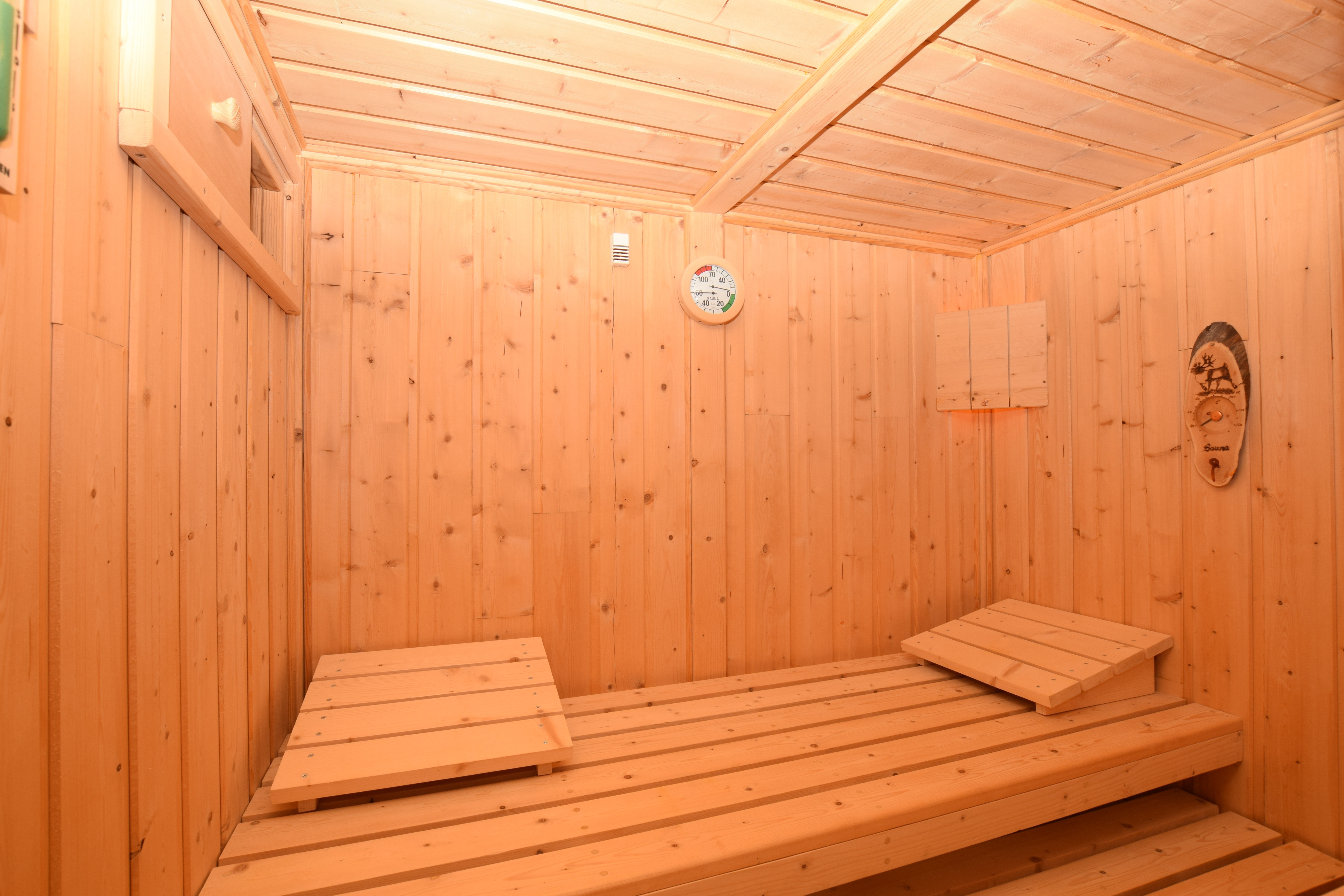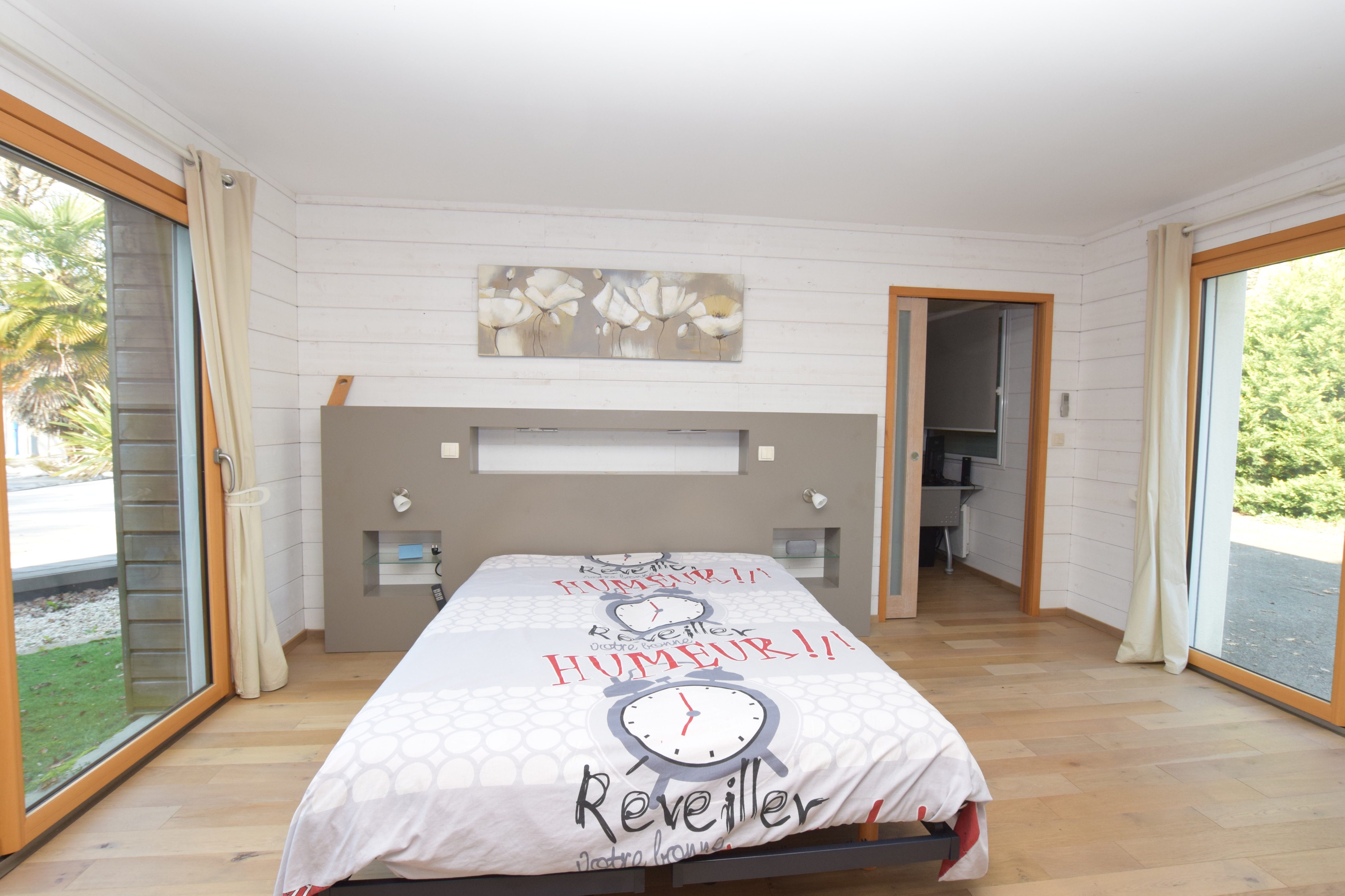 A l'étage : 4 chambres et une pièce détente (sauna, douche, hammam), idéale pour se relaxer.