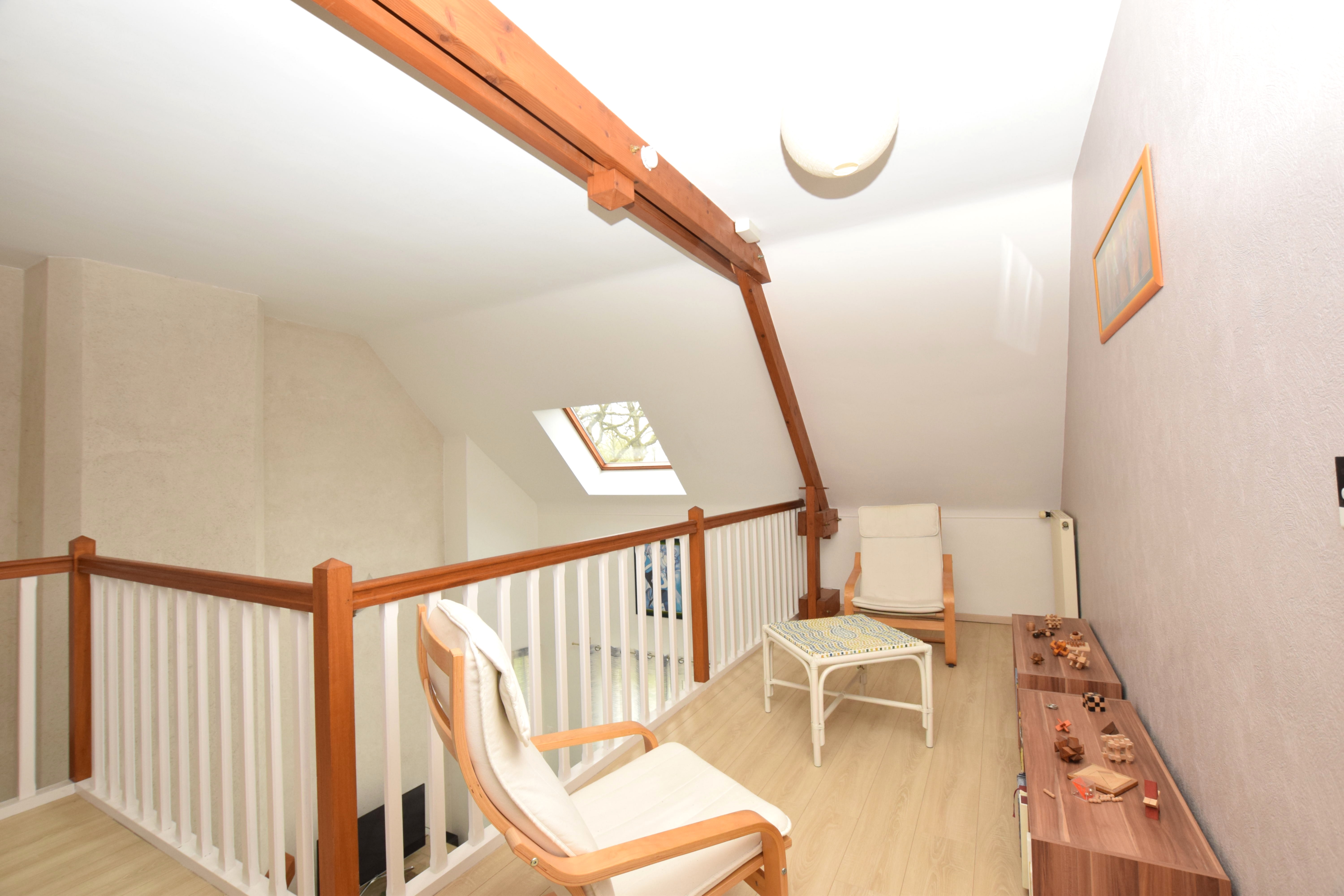 Un grand garage fermé offre un abri sécurisé pour véhicule(s) et des rangements supplémentaires. À l'étage, une mezzanine offre différentes possibilités : bureau, salle de jeux ou chambre d'appoint selon vos besoins ainsi une quatrième chambres. Un grenier entièrement aménageable permet encore d'augmenter le potentiel ou d'ajouter de la surface de stockage.